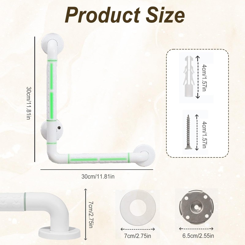 - L-förmiges Design: Das L-förmige Design des haltegriff dusche bietet sowohl horizontale als auch vertikale Greifmöglichkeiten, so dass Sie in verschiedenen Winkeln einen festen Griff haben, der Ihnen beim Ein- und Aussteigen aus der Dusche, beim Hinsetzen oder beim Balancieren hilft, um eine Vielzahl von Bedürfnissen zu erfüllen.