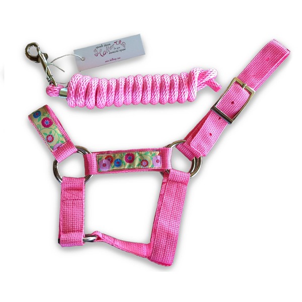 - CUTE AND STYLISH 2 item bundle consisting of one miniature donkey halter with coordinating overlay and one 3/8 inch matching solid color lead