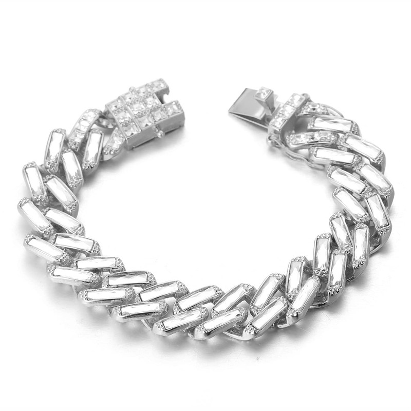 Halukakah Diamond Cuban Chain for Men, 15 mm 18 Carat Real Gold/Platinum Plated Gold Chain Bracelet/Necklace, Prong Set Shell White/Laser Colour Lab Diamonds Zirconia, with Free Gift Box, Metal Metal