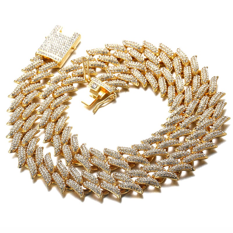 Halukakah Diamond Cuban Link for Men 20MM,18k Real Gold Plated Gold Chain Iced Out 3 Row Diamonds Thorn Chain Necklace 16",Prong Set Lab Diamonds,with Free Giftbox