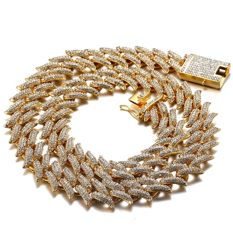 Halukakah Diamond Cuban Link for Men 20MM,18k Real Gold Plated Gold Chain Iced Out 3 Row Diamonds Thorn Chain Necklace 24",Prong Set Lab Diamonds,with Free Giftbox