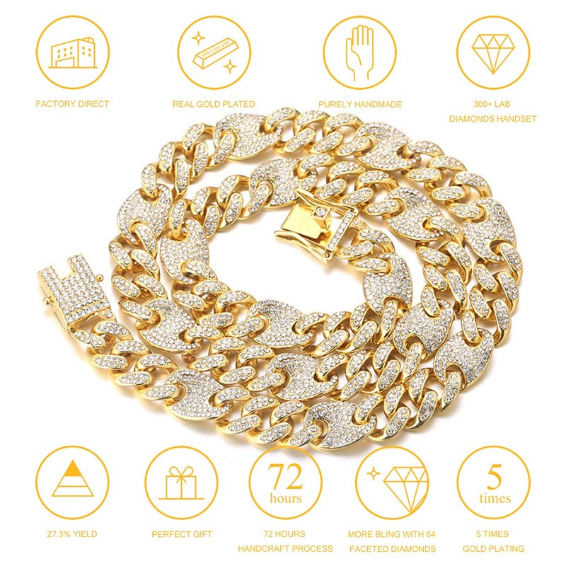- 3 STANDARDS FOR A GOOD GOLD CHAIN - Thick Gold (4 Times+ Real Gold Plated), Pro Handset Diamonds (Handcrafted by 15 years+ experience artisans instead of machine glueset), Reasonable Price (Only pay for the product itself)