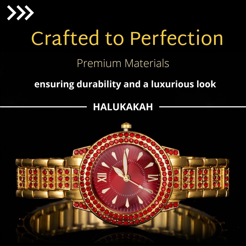 Halukakah Red Diamonds Gold Watch Iced Out for Boy Teens Kids - 18K Real Gold...