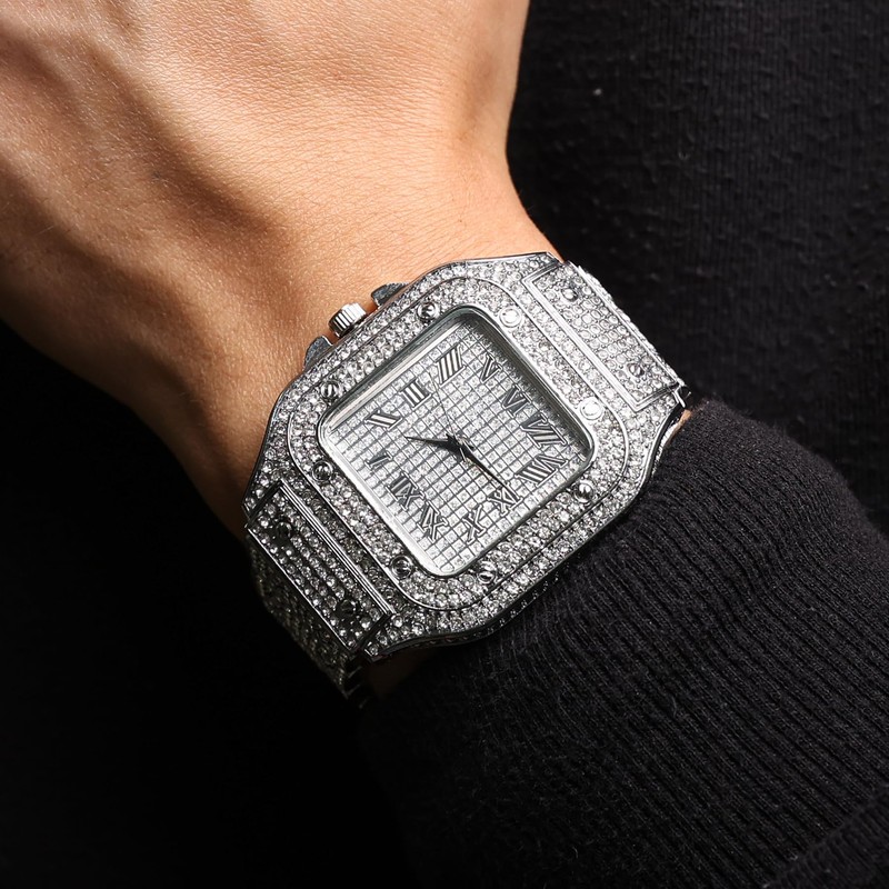 - Hand inlaid laboratory diamonds – Halukakah luxurious Miami watch and Cuban chain necklace, with VVS clarity zinc set simulate Austrian diamonds. Thanks to the exact calculation of the angle of the diamonds with multiple discs, the jewellery radiates more and they stand out anywhere from the mass