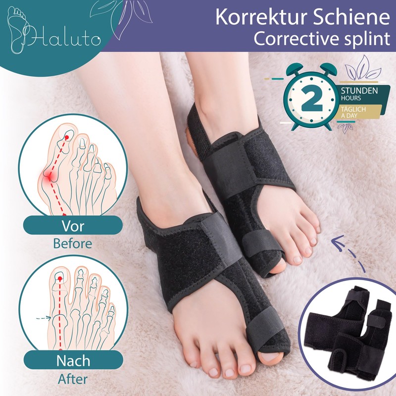HALUTO 6-in-1 Set Hallux Valgus Correction - Hallux Valgus Splint - Hallux Valgus Bandage - Toe Separator Hallux Valgus with Bunion Protection - Hallux Valgus Socks - Hallux Valgus Belt Training Band