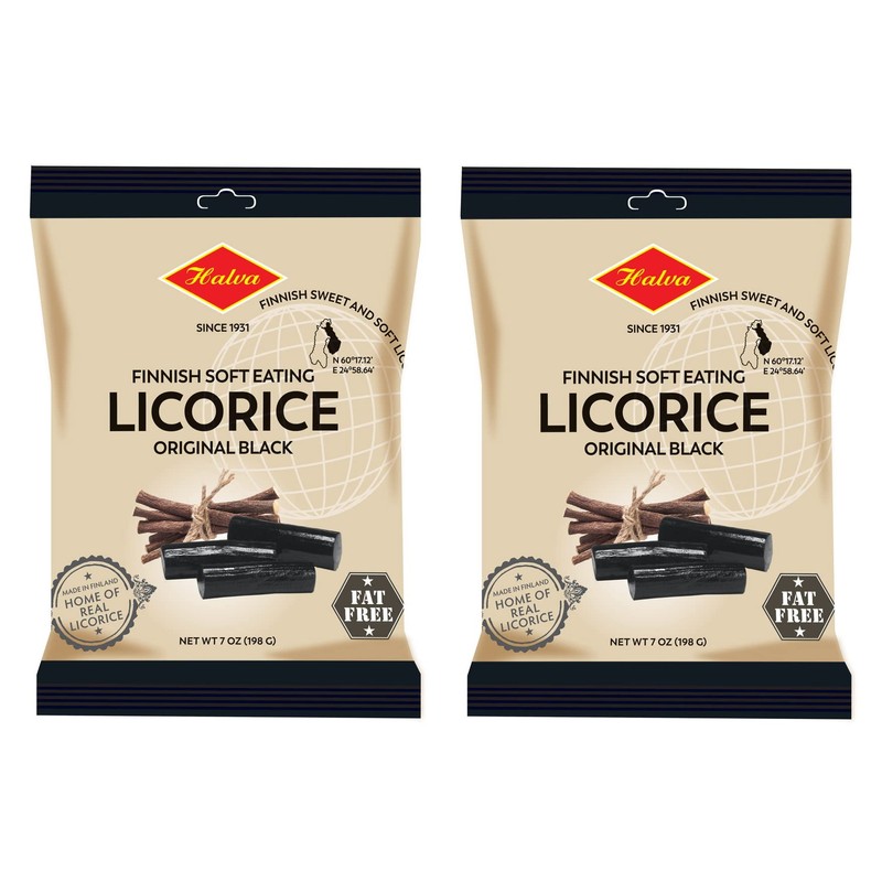 Halva European Style Licorice - Finnish Sweet and Soft Eating Licorice - 7 Ounce Bag - Pack of 2 (Original Black)