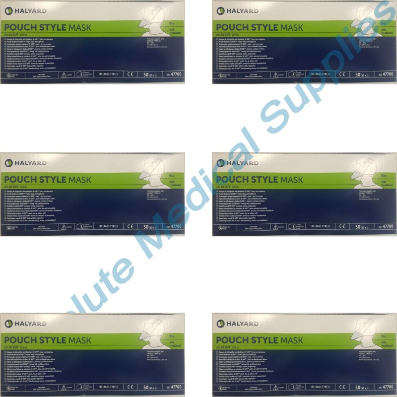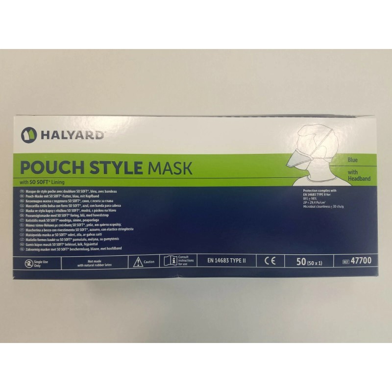 Halyard *300-Pieces* Halyard Pouch Style Type II Face Mask W/So Soft Lining Blue 47700