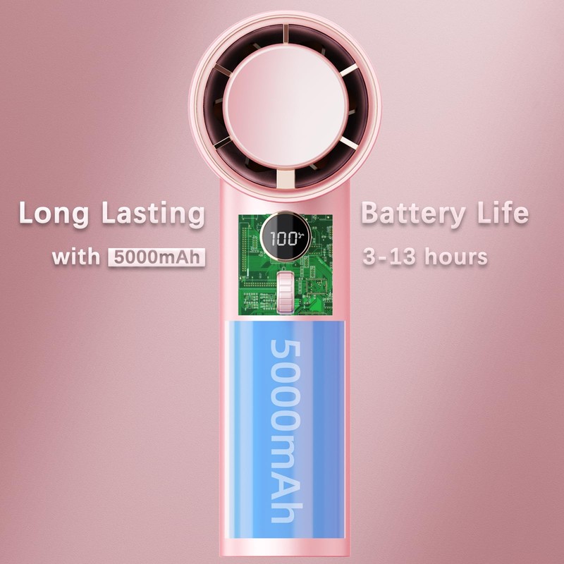 - 【Brushless Motor - Super Power】5000mAh battery significantly improves the wind speed, power, and endurance. The brushless motor high speed,reaching up to 13000 RPM,low energy consumption, It can cool for 3-13 hours on a single charge, quiet and stable operation, cool and undisturbed!