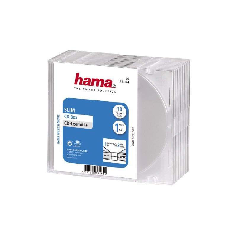 Hama 51164 Slim CD Cases Pack of 10 - Transparent