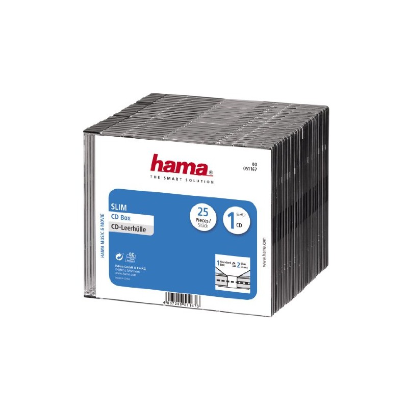 Hama 51167 Slim CD Jewel Case, pack of 25, transparent/black