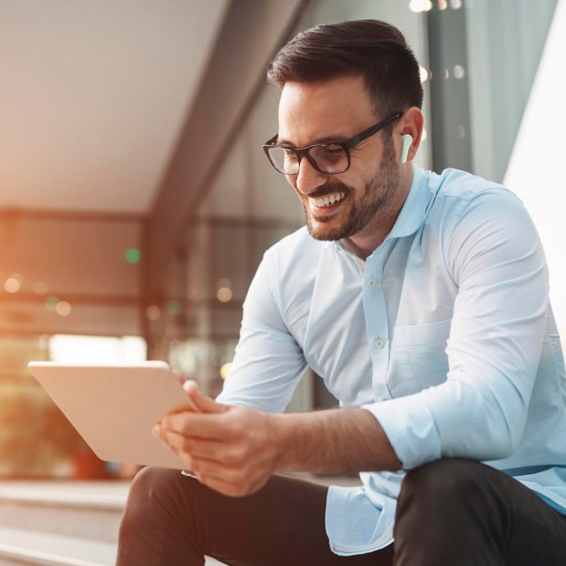 - Wireless earbuds with voice control + touch display: e.g. control volume with Siri and Google Assistant or answer calls via touch control