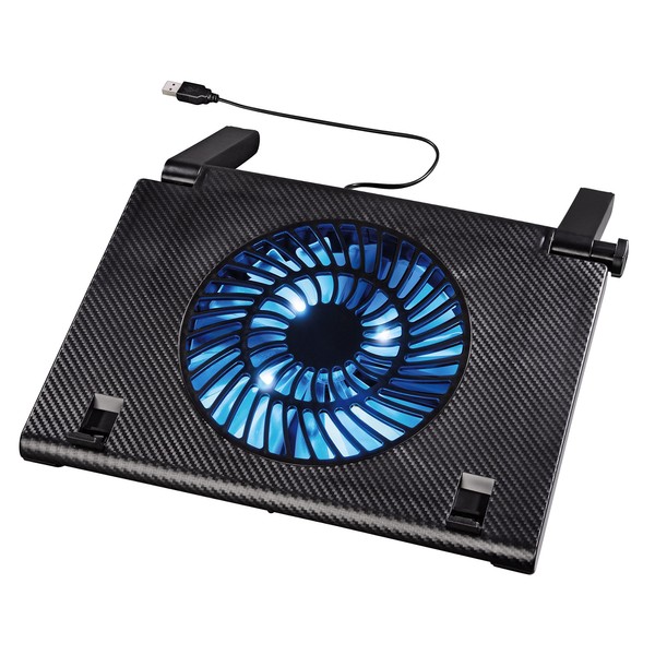 - Notebook cooler in high-quality carbon look: ensures optimal heat dissipation and protects the notebook from overheating (ventilation diameter 18 cm)