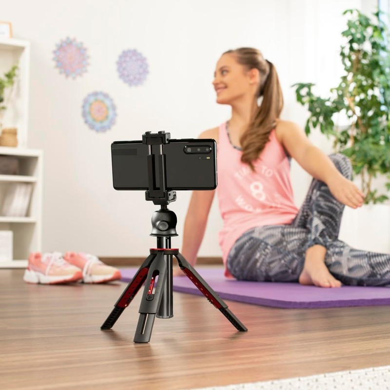 - Smartphone holder and ball head: compatible with devices from 5.9 to 9.0 cm wide, protective rubber coating, precise alignment in portrait and landscape orientation for optimal image composition
