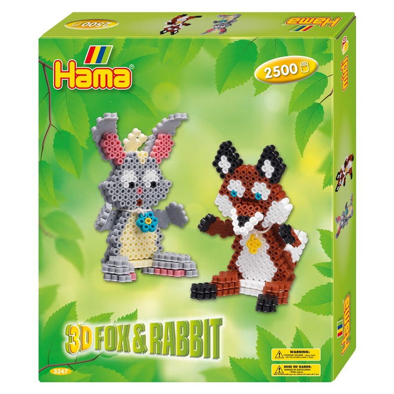 Hama Perlen 3247 Geschenk-Set 3D Fuchs und Hase mit ca. 2.500 bunten Midi Bügelperlen mit Durchmesser 5 mm, Motivvorlage und Stiftplatte, inkl. Bügelpapier, kreativer Bastelspaß für Groß und Klein