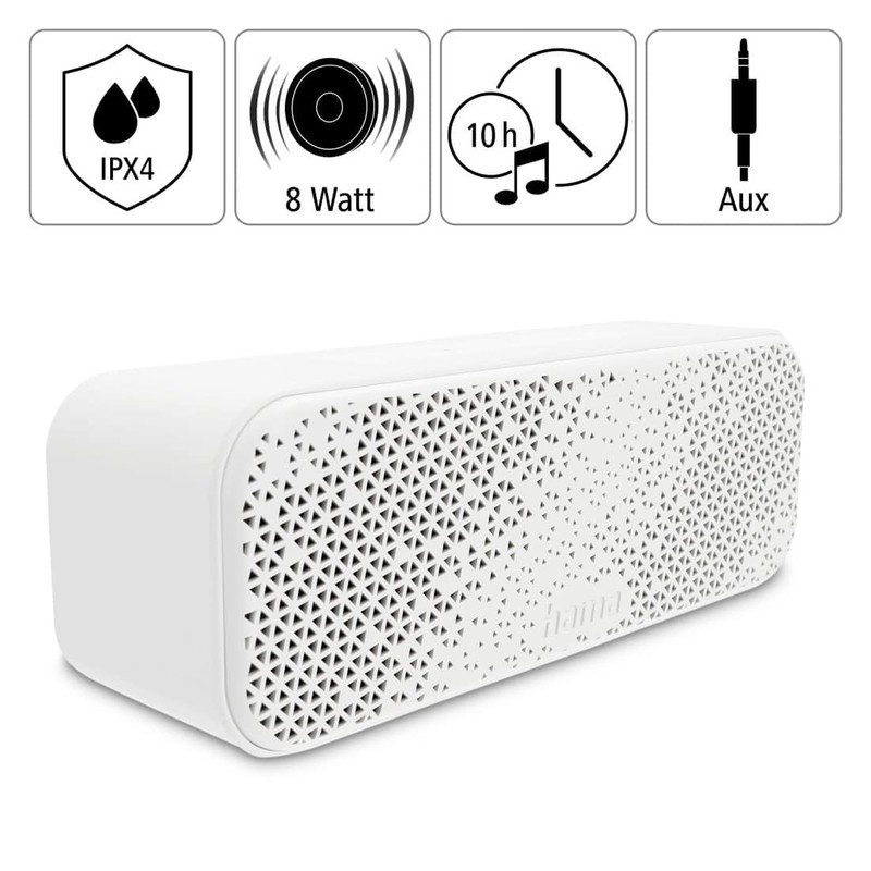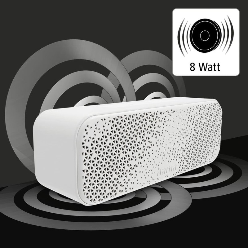 Hama | Portable Bluetooth Speaker (Wireless Speaker, IPX4, 8W Power, 10 Hours Music, Fast Charge, 2500 mAh) White