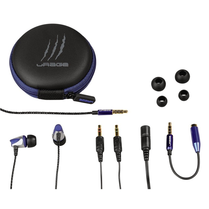 - Box contents: 1 set of 'uRage' earbuds, 1 HTC / Nokia adapter, 1 PC adapter, 4 spare ear pads and 1 carrying pouch