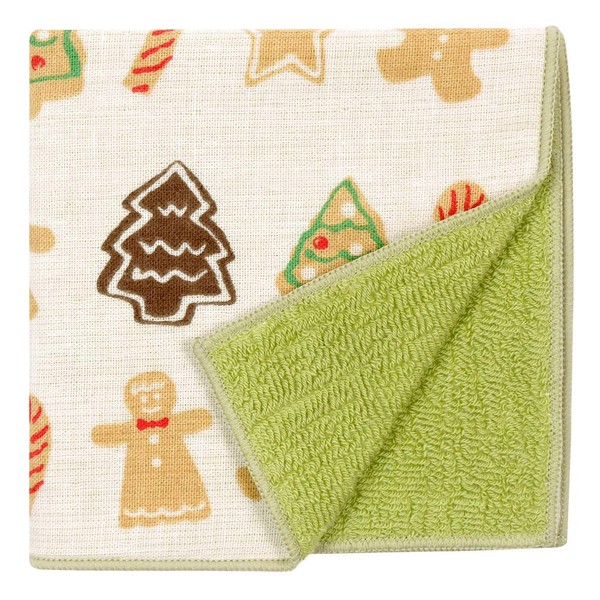 Hamamonyo Washed Towel Handkerchief, Ginger Cookie, Green