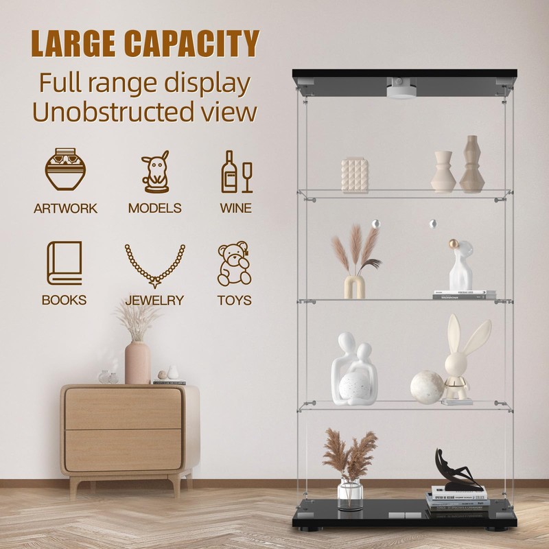 • 5MM Tempered Glass: This display cabinet is constructed of 5mm tempered glass and a solid frame, which is resistant to breakage, has high transparency, and can effectively prevent dust and damage