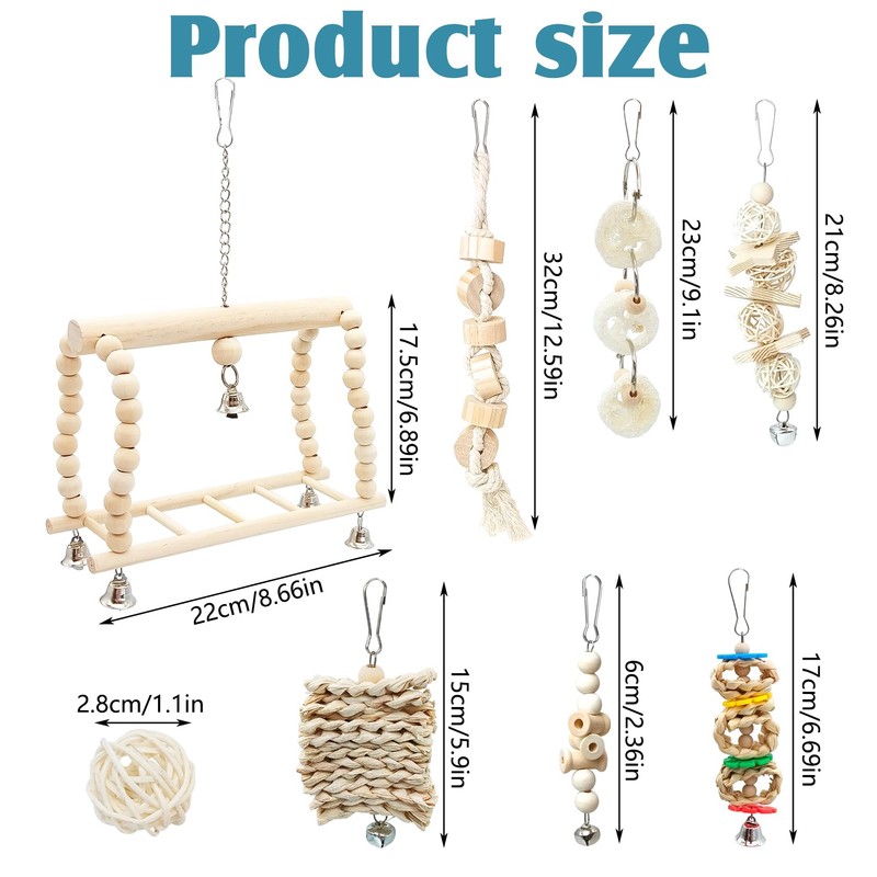 - Easy to install: These budgie toys come with detachable hooks that fit effortlessly into the bird cage, and these fun bird toys are placed in the cage to save space and make the cage look fun