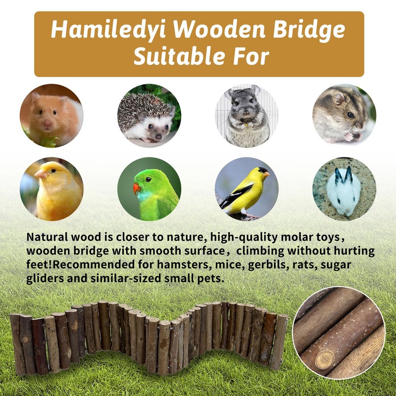 - Small-Size Wooden Bridge Hideout- Hamster bridge ladder is recommended for small-sized pets like hamsters, gerbils, rats, mouse, hedgehogs, reptiles or guinea pigs or other similar-sized small pets to practice balance skills,playing, resting, sleeping, entertaining