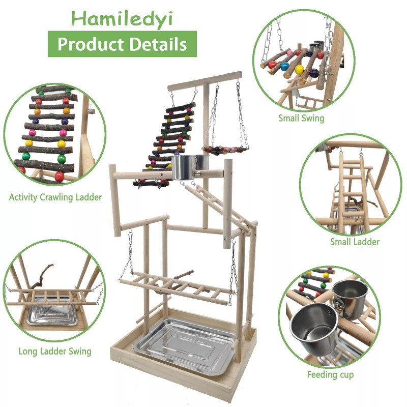 🕊【Extra Large 4-Layer Design】The bird cage playground with 4 layers of super large design, let your parrot have more space to play. Hamiledyi parrot perch stand contains stainless steel tray, suspension bridges, ladder, swings and two feeding cups to provide a comfortable place for your bird friends to play and train.