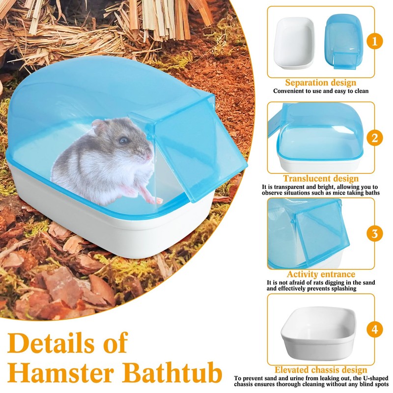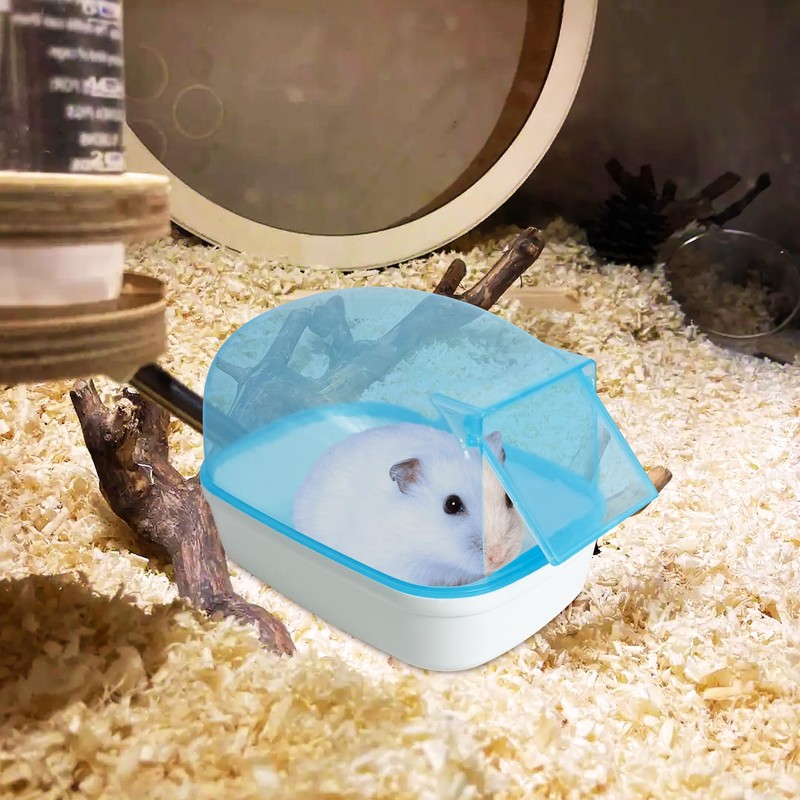 Hamiledyi Hamster Bathtub Dwarf Hamster Bathroom Sand Bath Container Chinchilla Sauna Room Plastic Sand Bath Box House for Gerbils Hedgehog Mice or Other Small Pets Animals(Blue,Small Size)