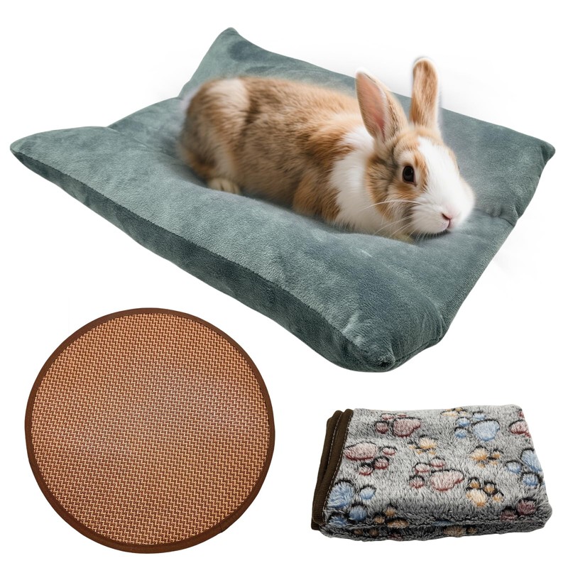 • 3-in-1 Year-Round Comfort:Cotton mat (fall/winter) blanket (spring) cooling pad (summer) 3 mats for 10-30℃. 15.7x14” fits rabbits ≤6lbs guinea pigs ferrets kittens