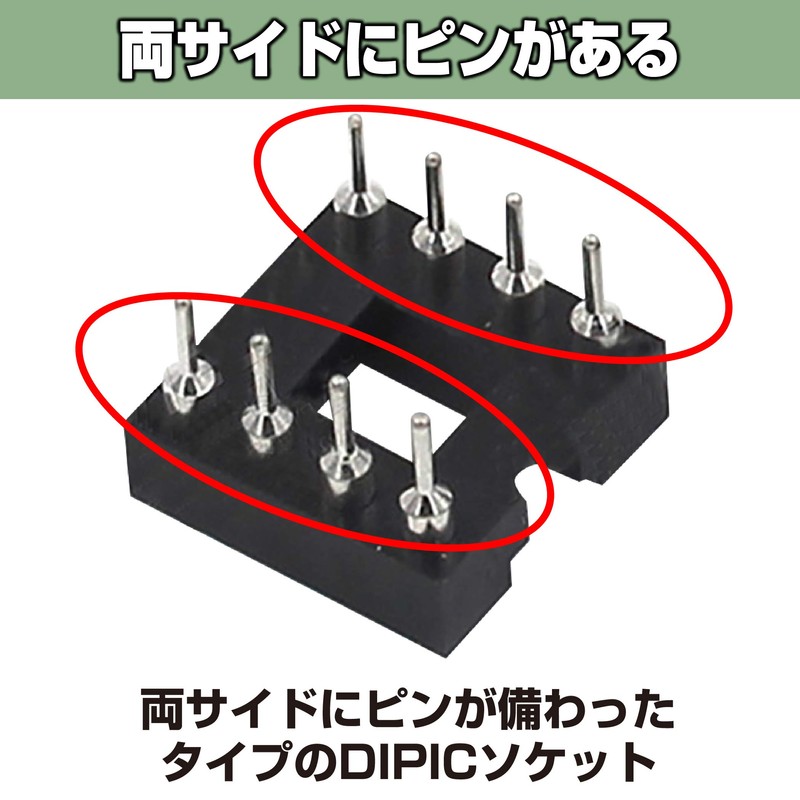 - DIPIC SOCKET WITH PIN ON BOTH SIDES: This product is a DIPIC socket with pins on both sides. If you want to attach an IC to a substrate or want to create a prototype, why not add it to your project?