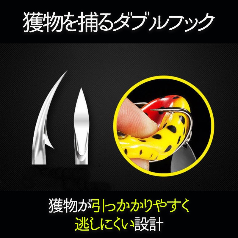 - DOUBLE HOOKS TO KEEP YOUR HOY: These soft frog lures have double hooks that make them easy to catch and not easy to miss. This lure set is recommended for when you want to increase your fish