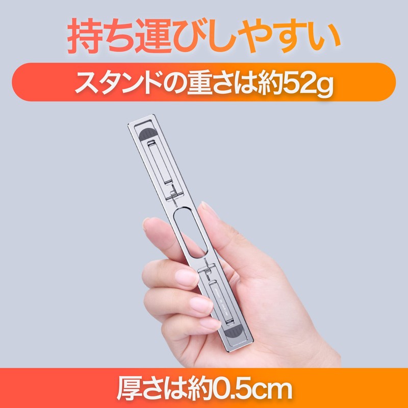 Stick-on Slim Stand: This is a thin laptop stand that can be attached to your laptop or tablet. The stand weighs approximately 1.9 oz (52 g), and the thickness is about 0.2 inches (0.5 cm), so it does not affect the ease of carry.