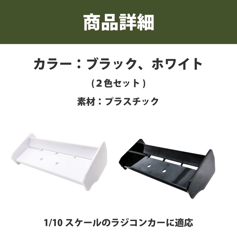 2-Color Set: A set of 2 rear wing parts in black and white. You can use it according to the color of your RC car.