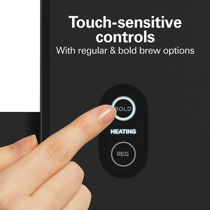- TOUCH-SENSITIVE CONTROLS WITH REGULAR AND BOLD BREW OPTIONS: These high-tech, capacitive-touch controls are sensitive to a light tap, so it's easy to select your settings, such as brewing coffee with regular or bold strength.