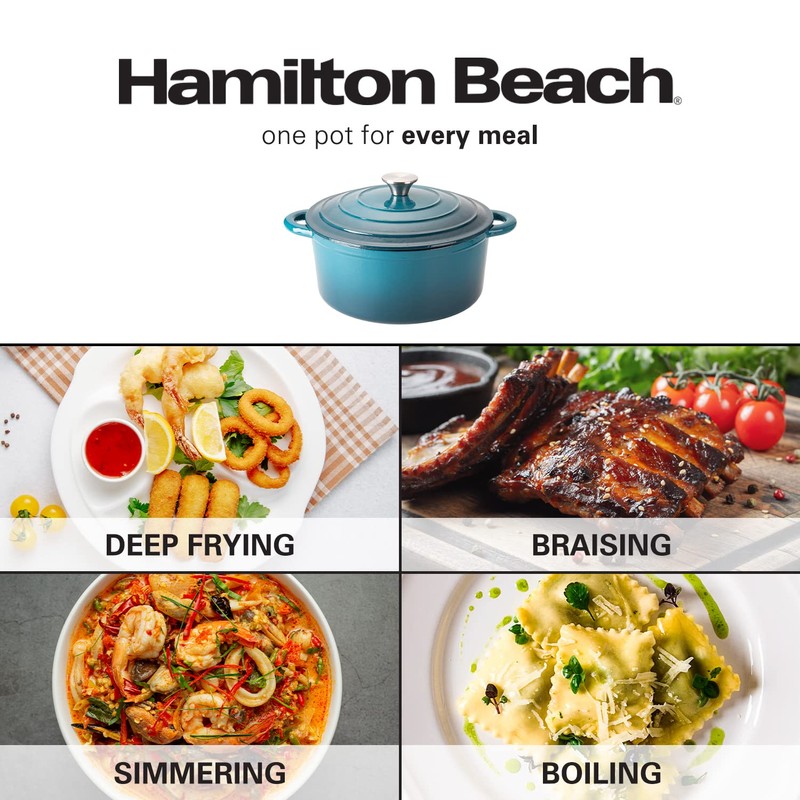 - HIGH QUALITY: We want our customers to be completely happy and satisfied, so we pack each Hamilton Beach Cast Iron Dutch Oven Pot with Lid 5.5qt, Navy with care. If you have any questions or concerns about the product, please feel free to reach out to us.