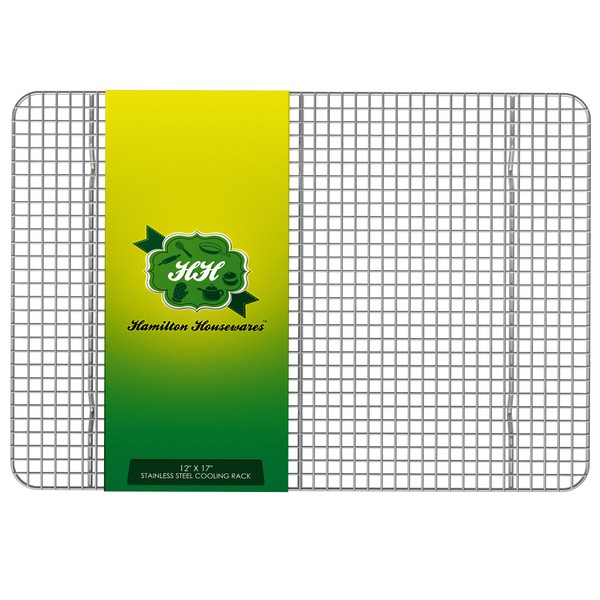 Hamilton Housewares Stainless Steel Cooling Rack - Heavy Duty and Oven Safe, Good for Cooling, Baking and Roasting - Fits Half Sheet Pans - Perfect for Cookies, Cakes & More (12" x 17")