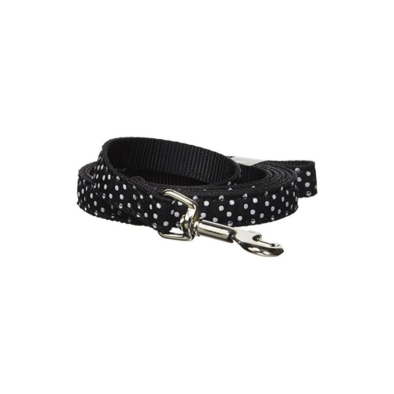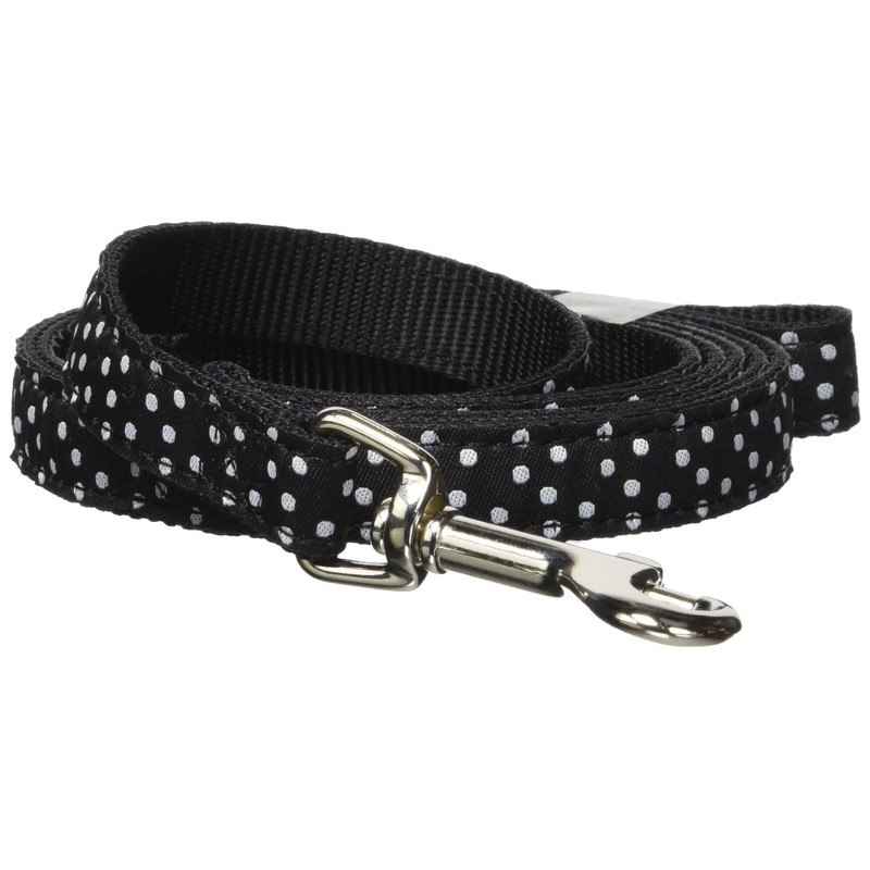 Hamilton Pet & Equine Single Thick Dog Leash with Polka Dots Ribbon Overlay, 5/8" x 6', Black (SLF 6 RO P29)