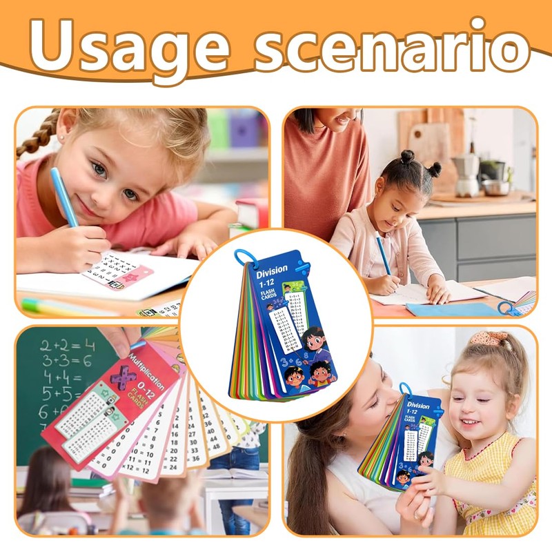 Comprehensive Coverage: contains 15 multiplication cards and 15 division cards, each card size is 80*180mm and the weight is 60g, which helps children fully master the multiplication and division operations from 1 to 12.