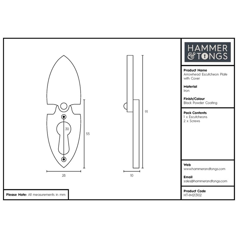 Hammer and Tongs - Arrowhead Escutcheon Plate with Cover - W30mm x H55mm - Black - Pack of 5