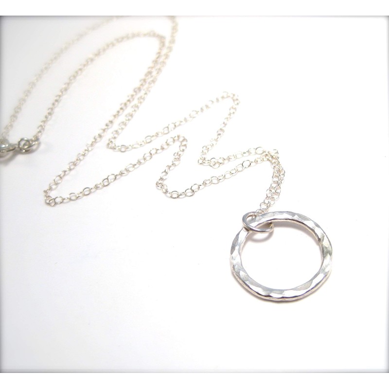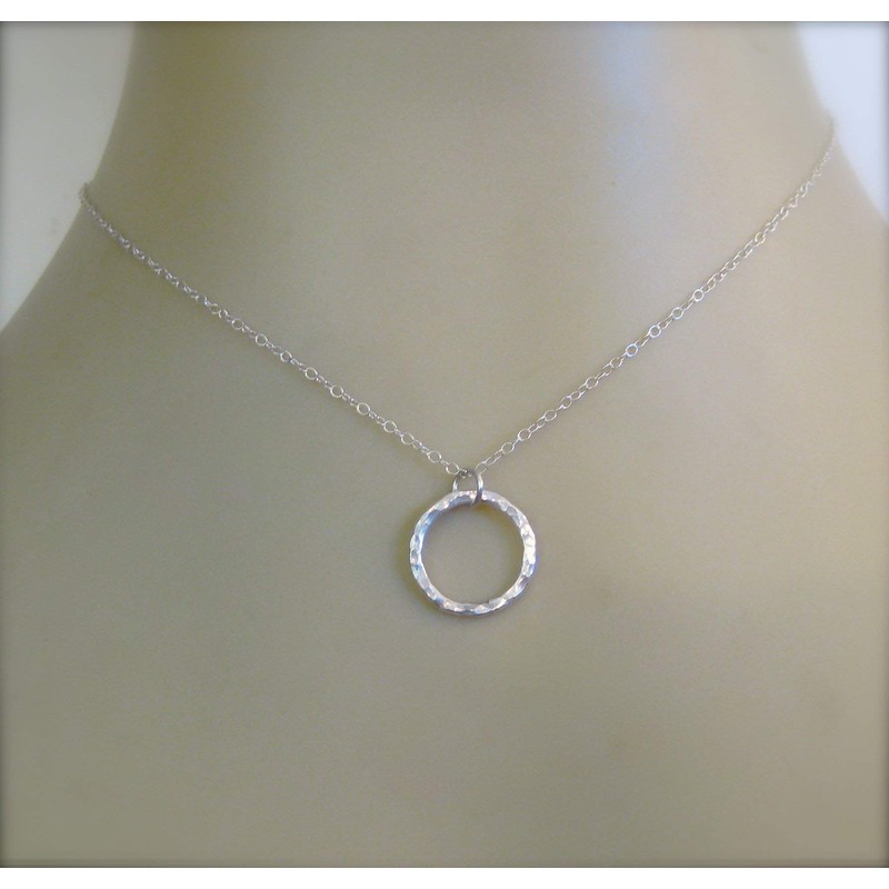 Hammered Silver Circle Pendant Necklace