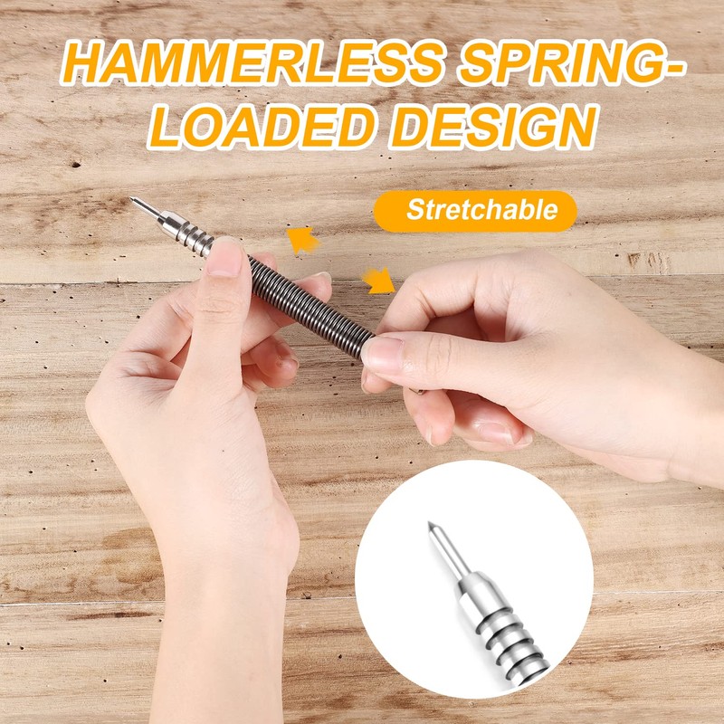 Hammerless Nail, Spring Nail Setter Punch Set Single Head Hammerless Nail Set Tool Door Hinge Pin Removal Tool with 5000 PSI Impact Force (Pointy)
