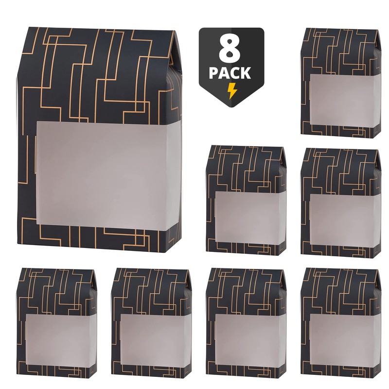Hammont Gift Boxes - Beautiful, Tall Paper Boxes with Window | Gift Boxes for Parties, Holidays, Weddings, Birthdays etc. | Cupcakes, Cookies, Candies, and More | 8 Pack - Grey (5.5"x8.16"x2.5")