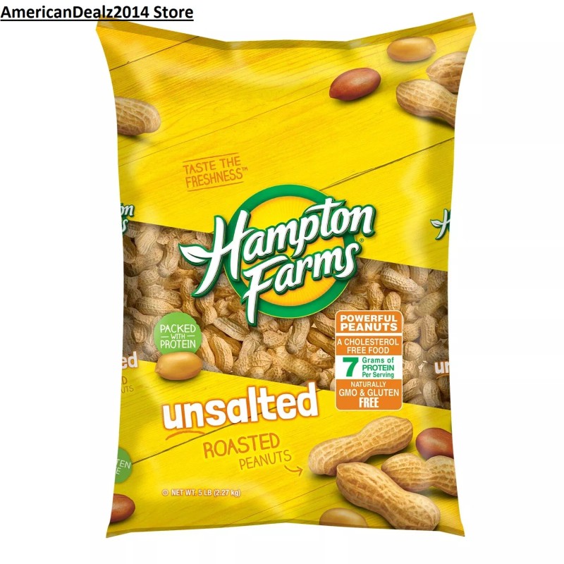 Hampton Farms Salted OR Unsalted In-Shell Peanuts Large Bag Net Wt 80 Oz (5 Lbs) - Salted