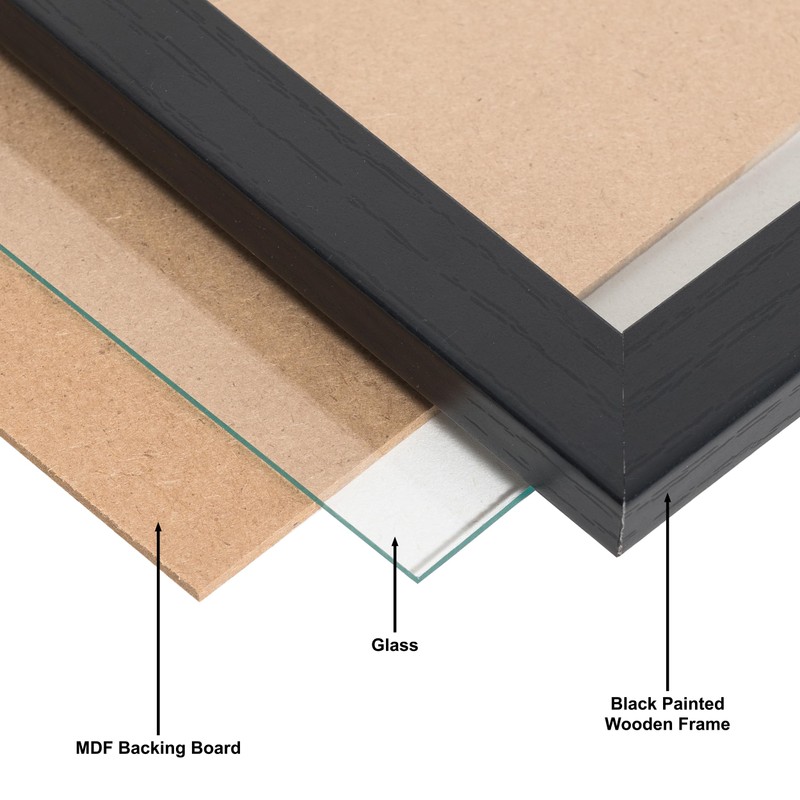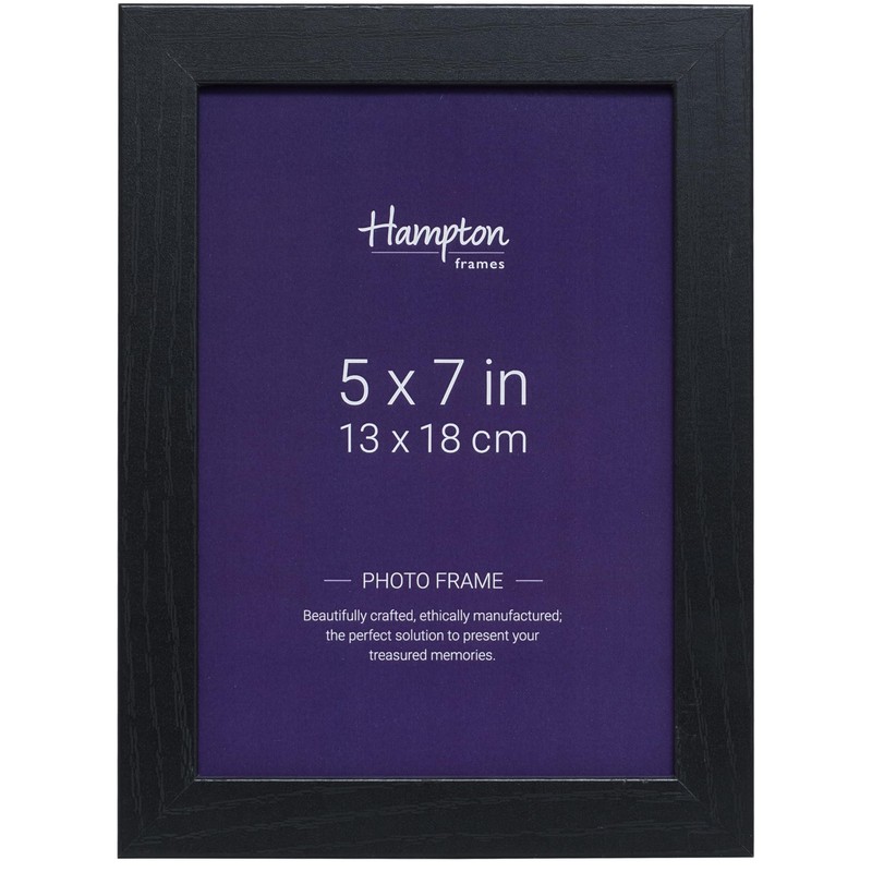- 5x7 (13x18cm) Rectangular Frame Made From Black Paperwrapped Wood Effect MDF. Supplied Shrinkwrapped and Boxed