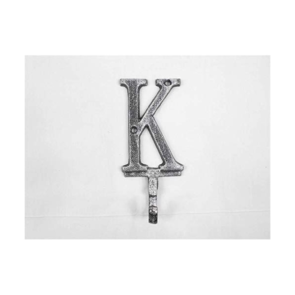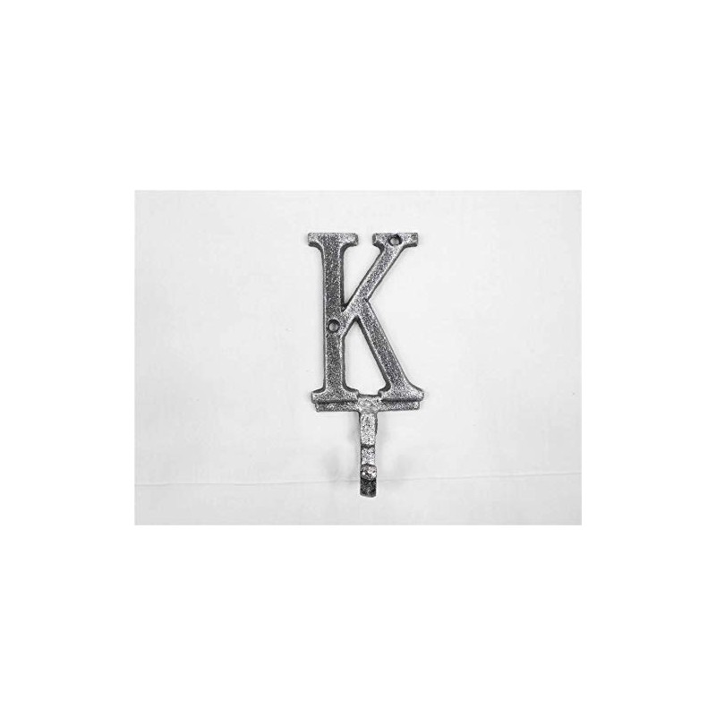 Hampton Nautical Rustic Silver Cast Iron Letter K Alphabet Wall Hook 6" - Decorative Cast Iron -