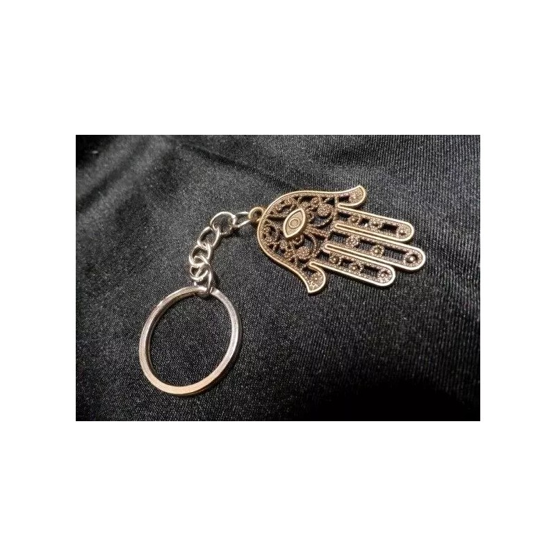HAMSA HAND KEYCHAIN ~ Bronze Tone Metal Pendant Key Chain Evil Eye NEW