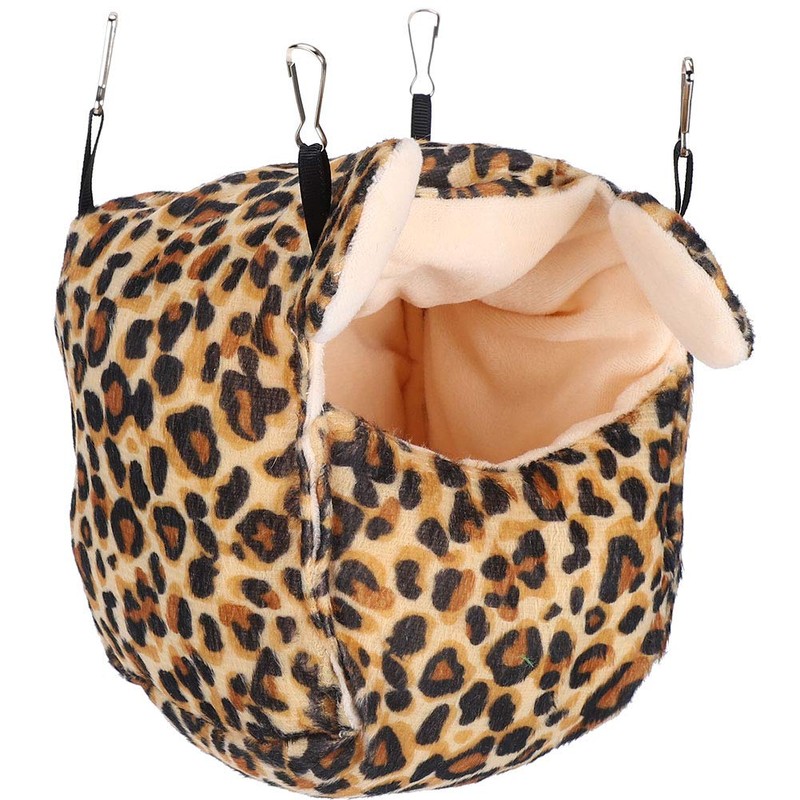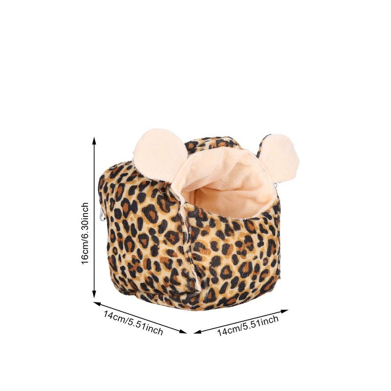 Hamster Bed, Thickened Winter Warm Sleeping Bed Nest for Sugar Sailplane Hamster Gerbil Rat Mouse Squirrel (Leopard) Small Animal Beds
