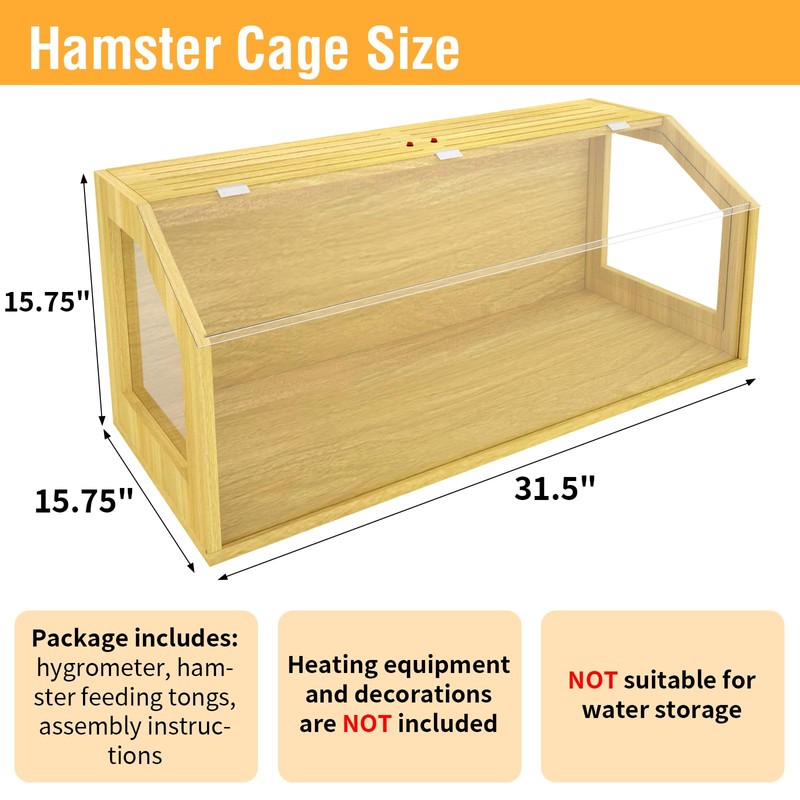- Warm Wood Vibes: Unlike cold and neutral tones that lack warmth, the warm wood tones mimic natural environments, creating a comfortable and relaxing atmosphere for your hamster; This soothing color scheme helps reduce stress and anxiety, providing a healthier and happier environment for your small animal
