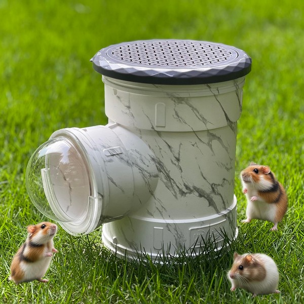 Hamster Carrier Cage with Bubble Dome, Marble Print Design, Table House Cage for Hamster and Small Guinea Pig Bird Parrot Budgies, Transparent Front View Top Ventilation