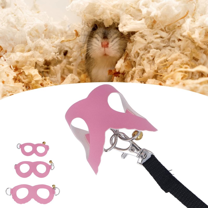 Hamster Harness Set, 3 Sizes Comfortable Hamster Harness and Leash Set Sturdy Artificial Leather with Bells for Guinea Pigs(Pink)