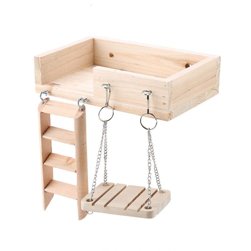 - Play and exercise: Provides climbing pets and exploring desire. Help them make a good habit of playing and exercising at home. Ladders can practice hamsters jumping and crawling, swing can bring the hamster a lot of fun.