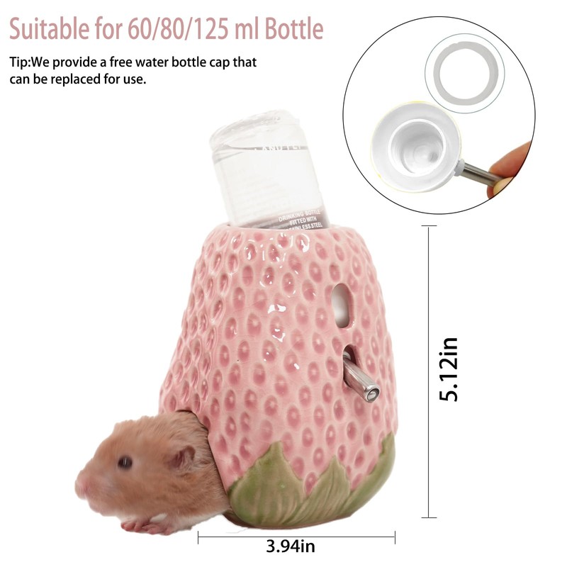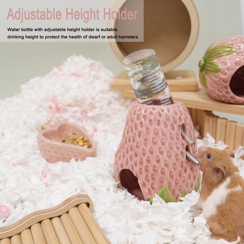 - Strawberry Shaped Design: The Deapeey hamster water bottle holder can also serve as a tunnel for hamsters, satisfying their instincts for digging, exploring, and building nests. The cute strawberry gerbil water bottle creates a soft and cute living environment for hamsters